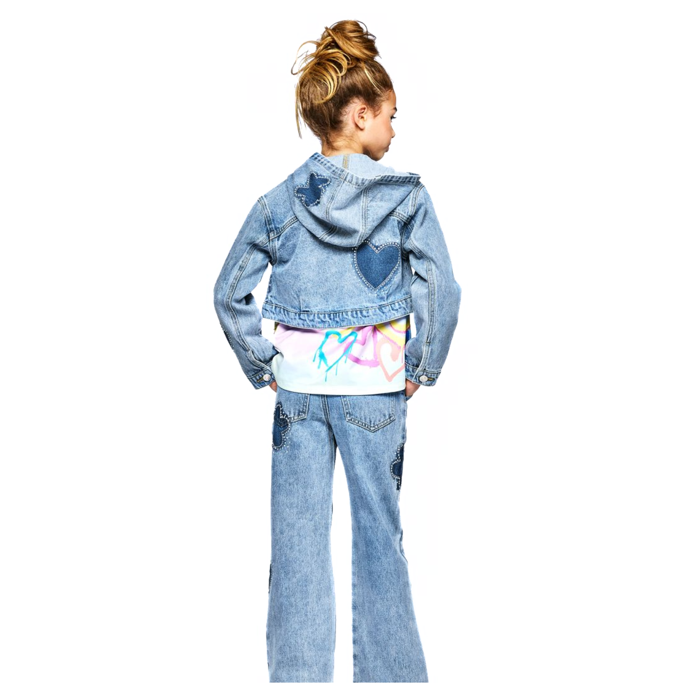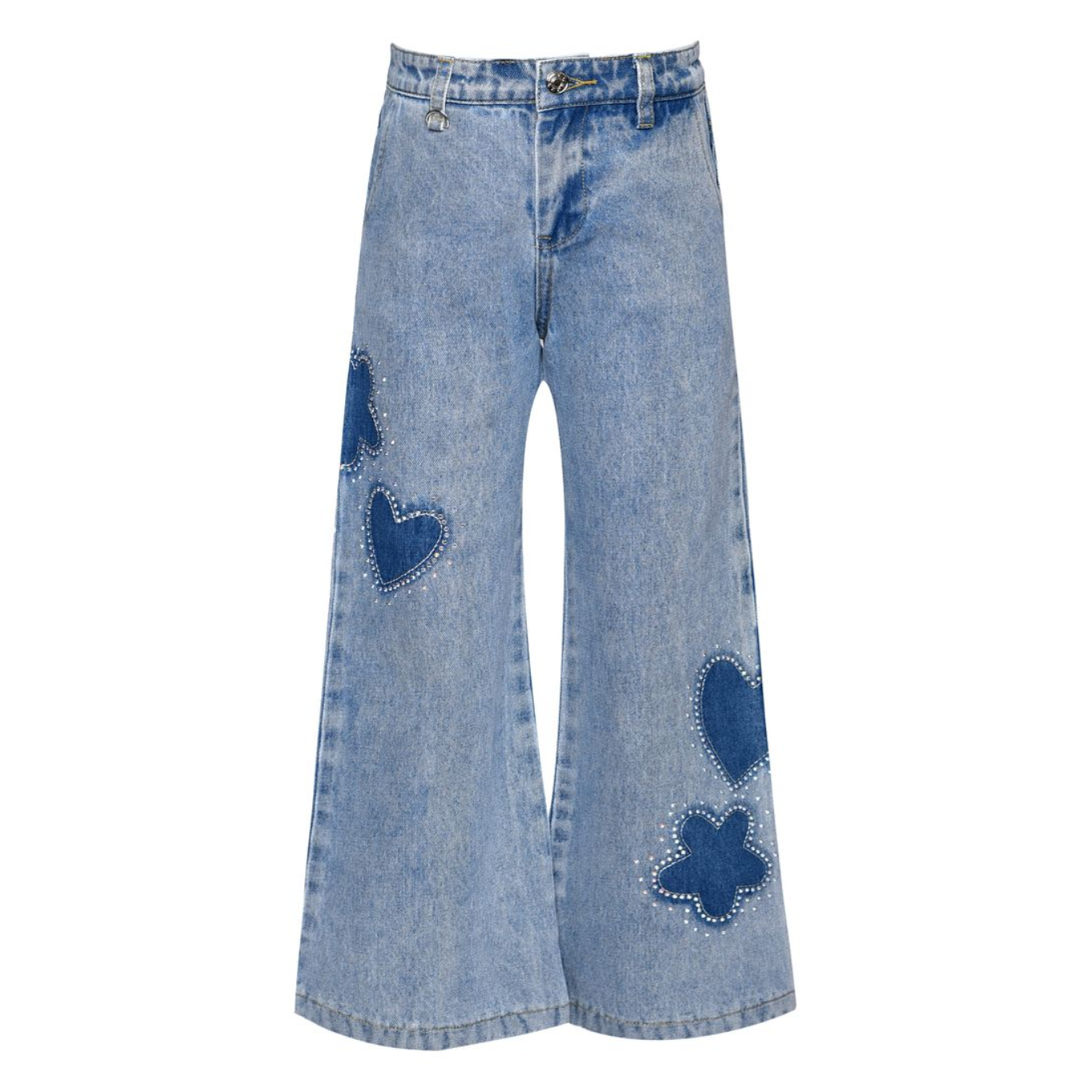 RHINESTONE SHADOW HEART & FLOWER DENIM JEAN.