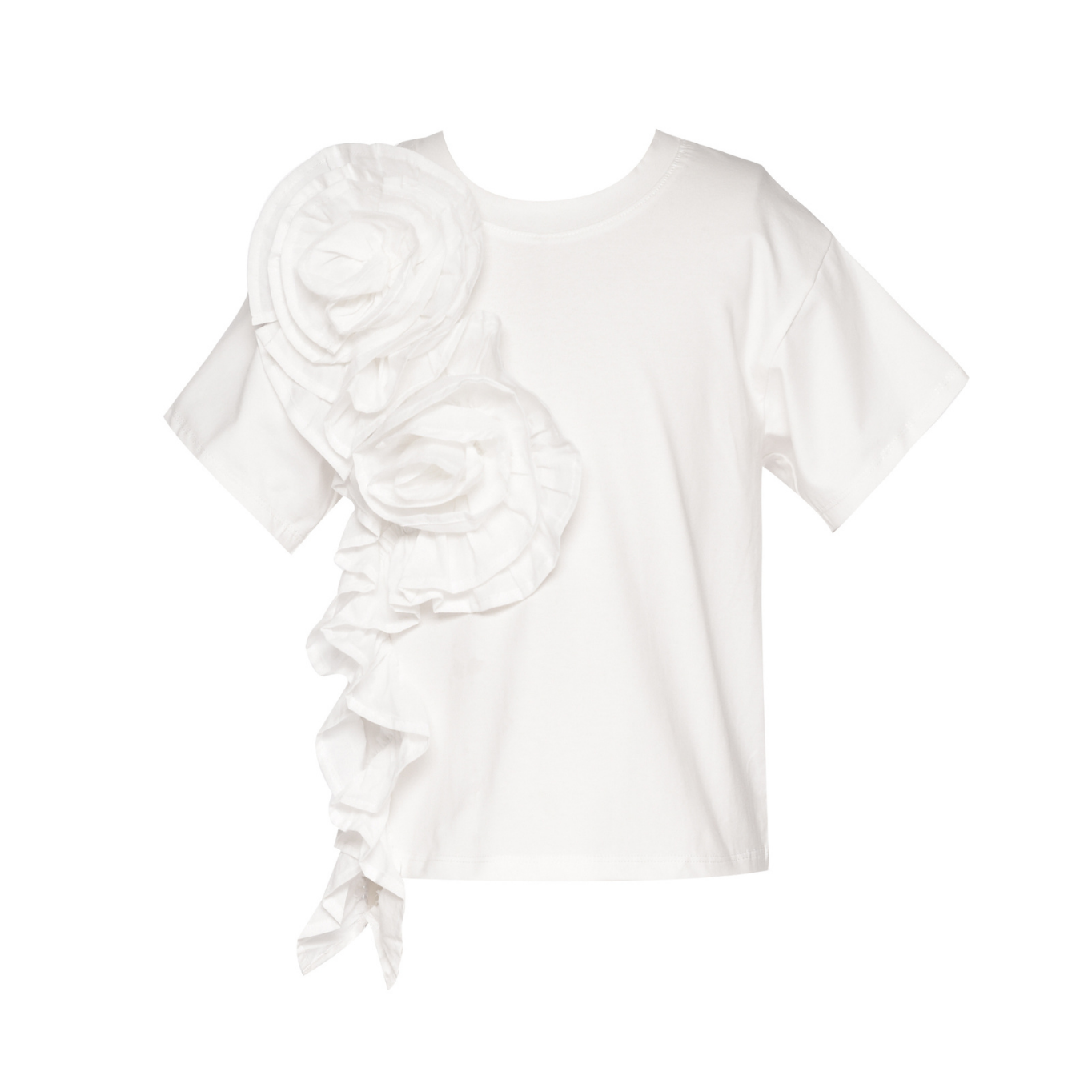 SHORT SLEEVES TOP WITH ROSETTE TRIM.