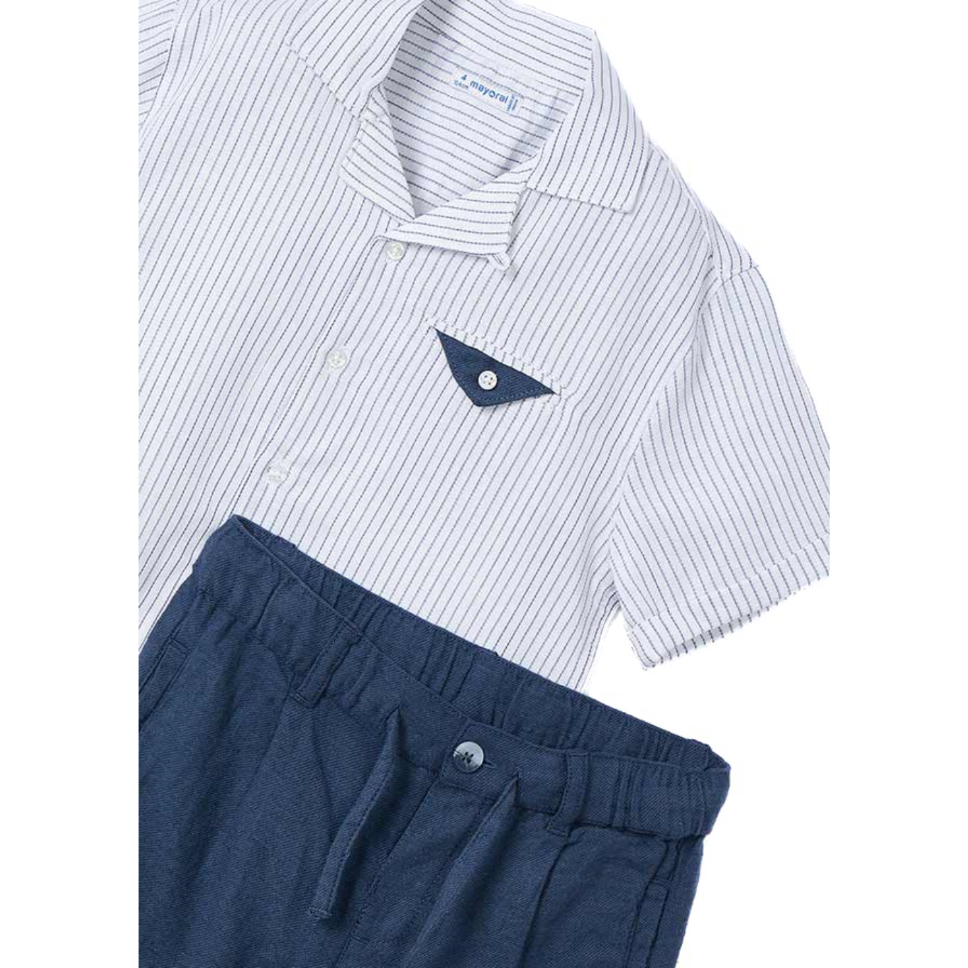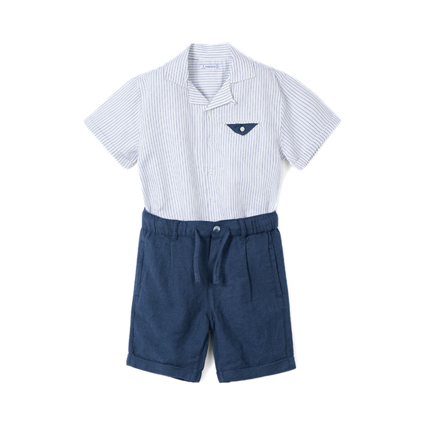 SHORT SLEEVES BUTTON DOWN SHIRT AND SHORT WITH ADJUSTABLE WAIST.