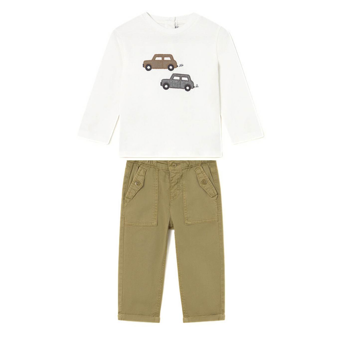 Classic line regular fit pants for baby. Faux flies. Elastic waistband. Adjustable elastic waistband with buttons inside the waistband for a better fit. Comfortable and resistant twill fabric. Design with multiple pockets.