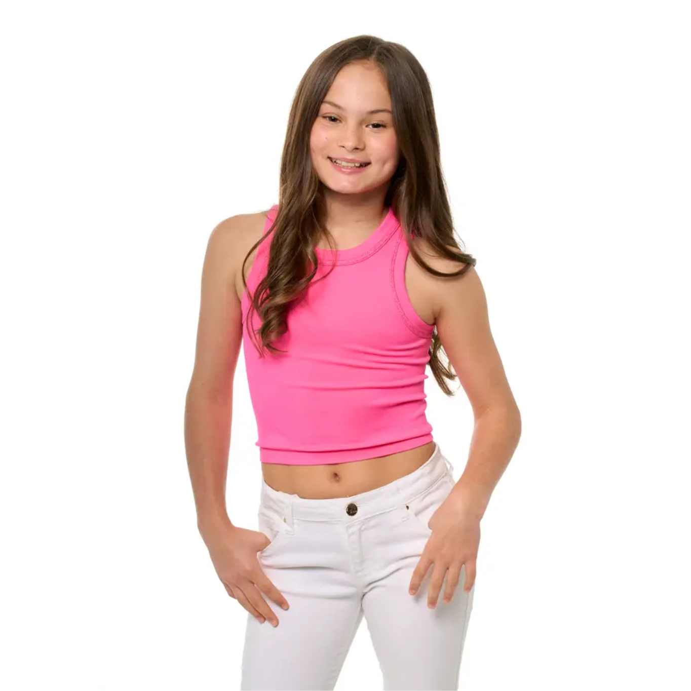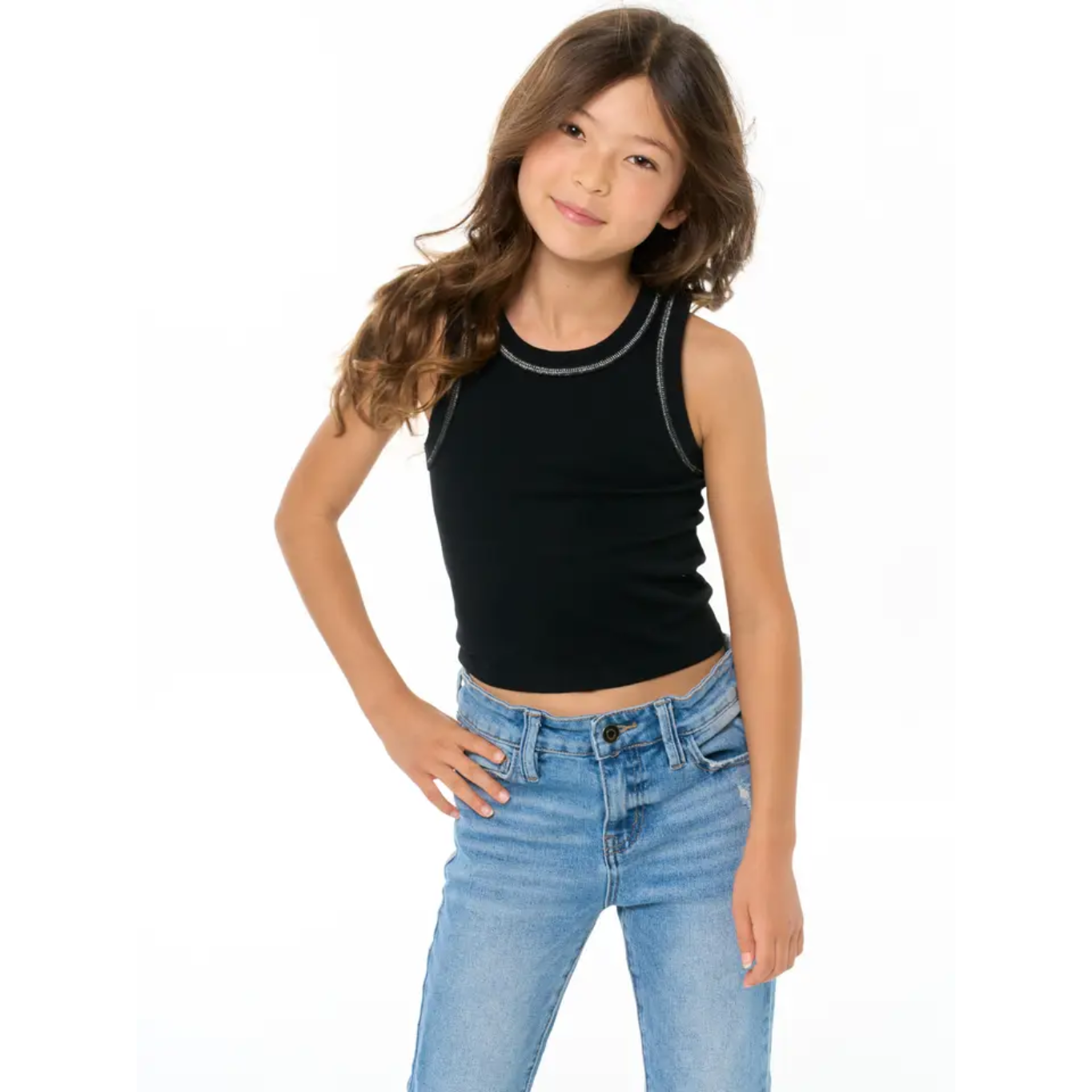 SUPER STYLISH TWEENS SLEEVELESS TOP W/ METALLIC STITCHING! IT'S THE PERFECT MIX OF A SIMPLE TANK WITH A LITTLE SPARKLE OF GLITTER.