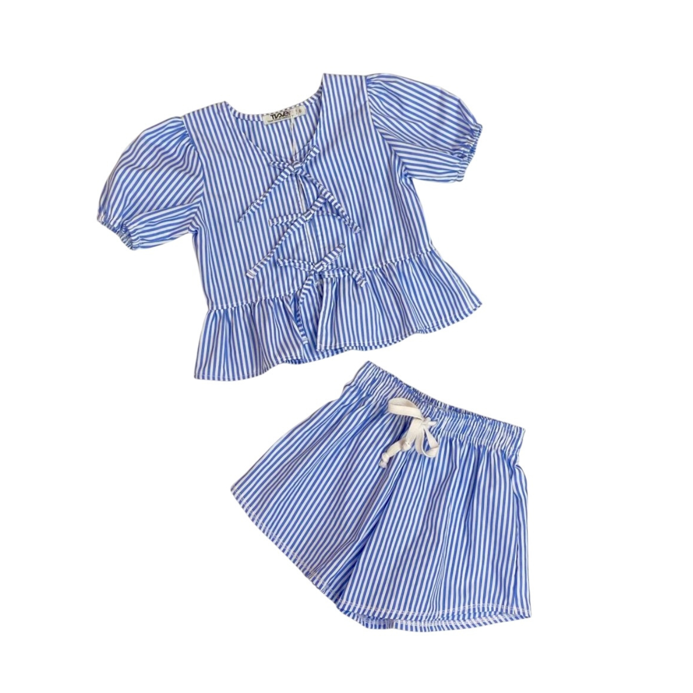 PUFF SLEEVES WITH BOW FRONT TOP & SHORT.