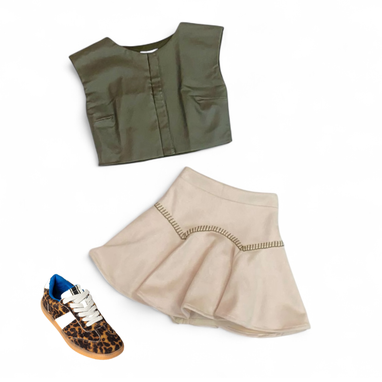 Step into bold style with the Nadia Top! Crafted from sleek faux leather, this playful piece features a handy zipper top for easy flair and cap sleeves that add just the right touch of charm. Perfect for turning heads and mixing edgy with fun, it’s your go-to for an effortlessly cool look.