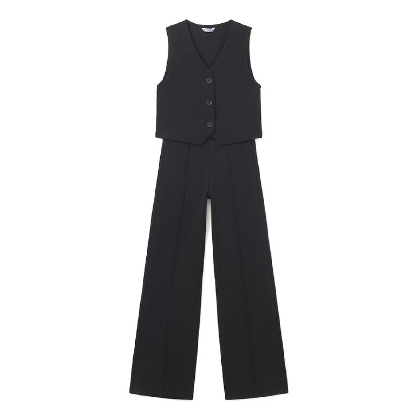 TWO PIECE SET FOR GIRLS. VEST V-NECK DESIGN. BUTTON FASTENINGS DOWN THE FRONT.