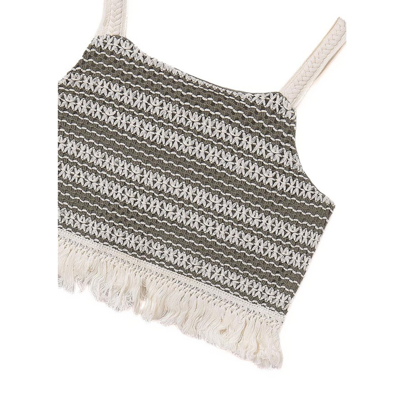 CROCHET CROP TOP AND CARGO WIDE LEG PANTS.