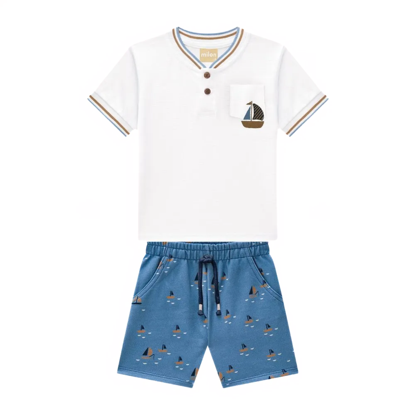 This set includes a fun polo shirt paired with cozy drawstring sweatpant shorts—perfect for playful days!